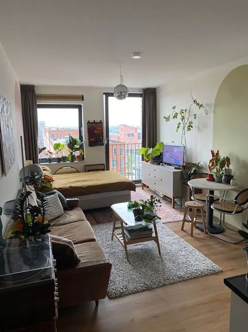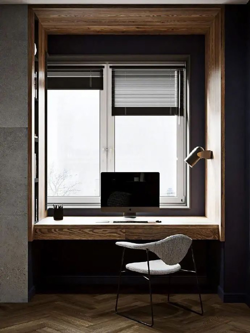 深色木地板也许略显沉闷,但亮色只要一加入,空间内立马质感翻倍。